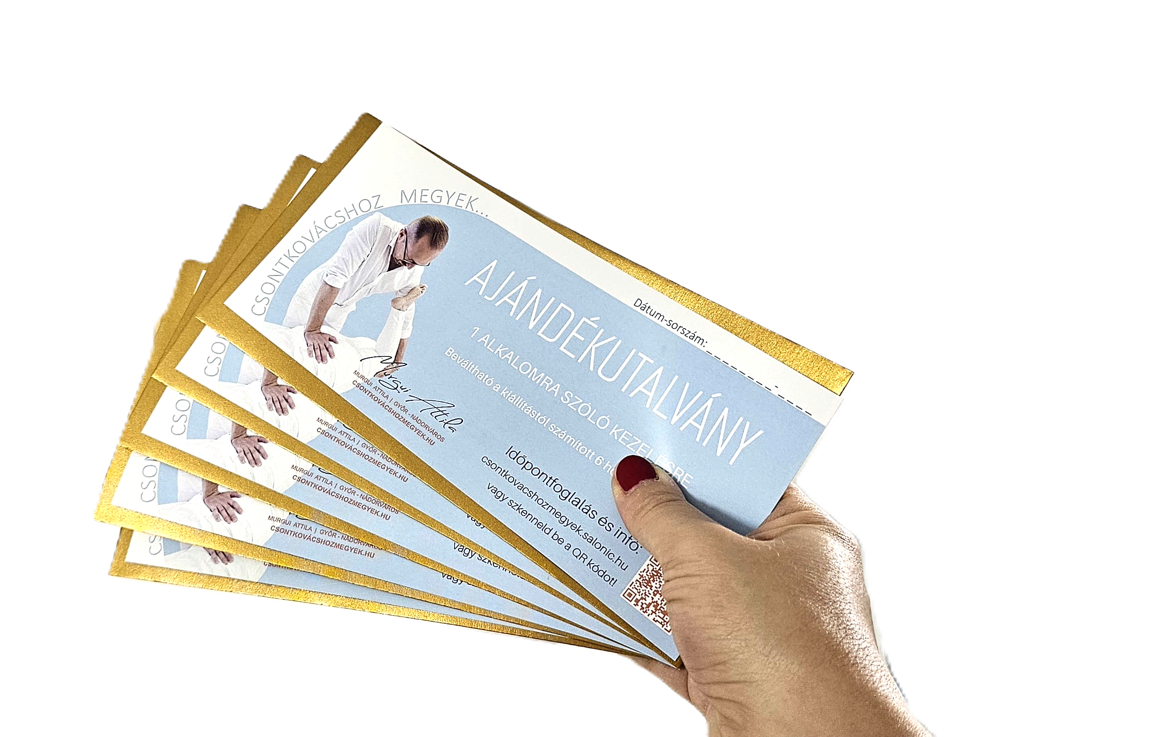 - Egy darab utalvány egy alkalomra szóló csontkovácskezelést tartalmaz. Jelenleg csak erre az egy szolgáltatásunkra lehet ajándékutalványt vásárolni.